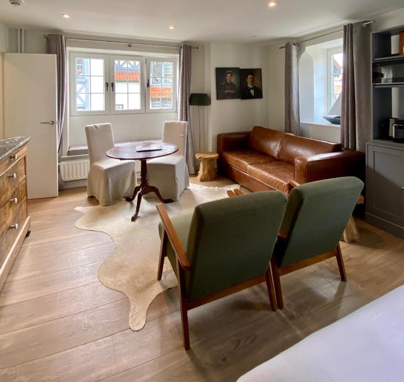 Deze tweepersoonskamer is voorzien van een badjas, thee- en koffiefaciliteiten en een zithoek.