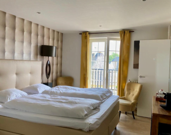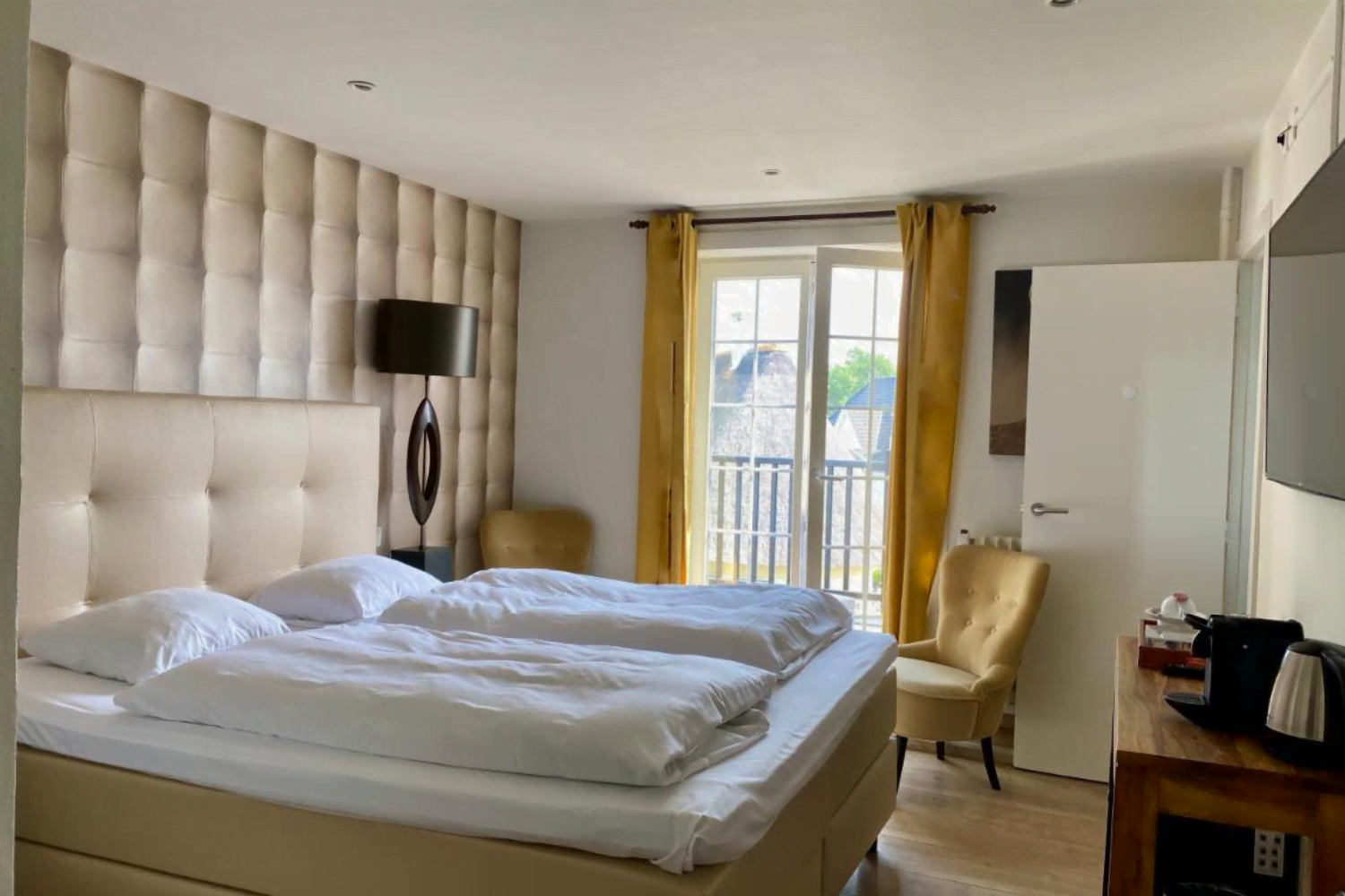 Deze tweepersoonskamer heeft een balkon, thee- en koffiefaciliteiten en een badjas.