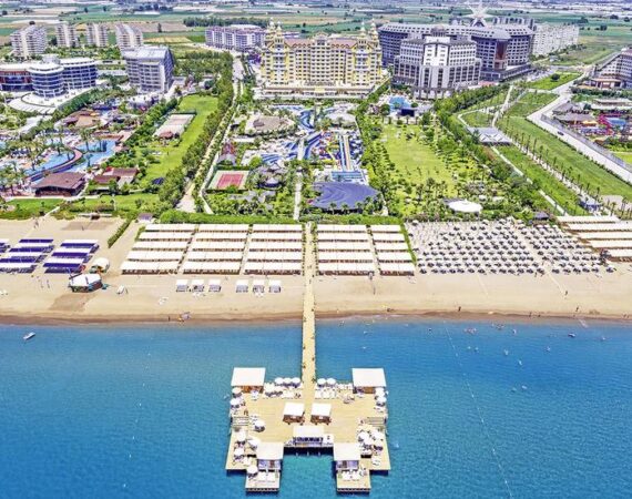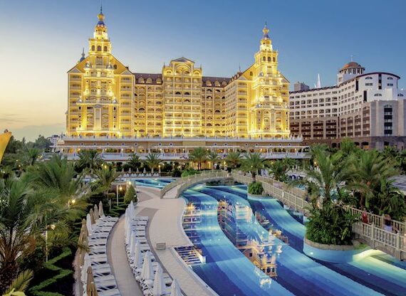 Het Royal Holiday Palace resort in Lara biedt een ideale vakantie-ervaring direct aan het strand. Met zijn indrukwekkende kasteelarchitectuur, grote zwembad en aquapark, wellnessfaciliteiten en diverse sport- en entertainmentopties, is het een favoriet onder gasten. Met vijf à-la-carterestaurants en een buffetrestaurant worden culinaire wensen vervuld. All-inclusive arrangementen omvatten maaltijden, snacks en drankjes. Voor kinderen zijn er speelvoorzieningen en animatie, terwijl volwassenen kunnen ontspannen in de wellnessruimte met Turks bad en sauna. Sportfaciliteiten, waaronder tennis en watersporten, zijn beschikbaar, terwijl avonden worden opgeluisterd met shows en livemuziek. Met uitstekende service en veel tevreden gasten, is dit resort een populaire keuze voor een onvergetelijke vakantie aan de Turkse Rivièra.