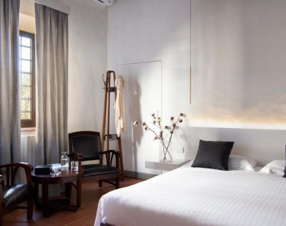 Deze elegante kamer biedt uitzicht op de binnenplaats of het omliggende platteland en beschikt over een cassetteplafond en antieke tegelvloeren. De kamer is voorzien van airconditioning, een minibar, een televisie en een eigen badkamer. Er is gratis WiFi beschikbaar.