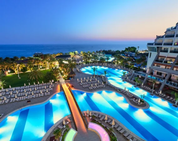 Seaden Sea Planet Resort & Spa, gelegen aan de kust van Side, biedt een zorgeloos verblijf met een professioneel animatieteam, spectaculaire glijbanen en een wellnesscentrum. Met directe toegang tot het privékiezelstrand is het de perfecte bestemming voor ontspanning en plezier voor het hele gezin. Het resort beschikt over 460 kamers verdeeld over 10 verdiepingen, diverse restaurants en bars, en een scala aan sport- en ontspanningsfaciliteiten, waaronder fitness, tennis, en dagelijkse entertainment. Kinderen kunnen genieten van het kinderzwembad met 10 glijbanen, de miniclub en de speeltuin. Met zijn ligbedden, parasols en gratis badhanddoekenservice bij het zwembad en het strand, biedt Seaden Sea Planet Resort & Spa alles wat je nodig hebt voor een onvergetelijke vakantie.