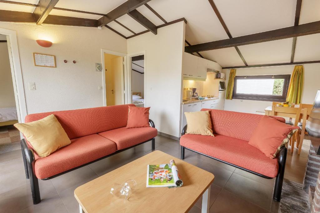 Deze villa van 50 m² heeft 2 slaapkamers, 1 badkamer met bad en toilet, evenals een volledig uitgeruste keuken. Eén slaapkamer heeft 2 eenpersoonsbedden naast elkaar en de tweede slaapkamer heeft een eenpersoonsbed. Terras met picknicktafel inbegrepen.